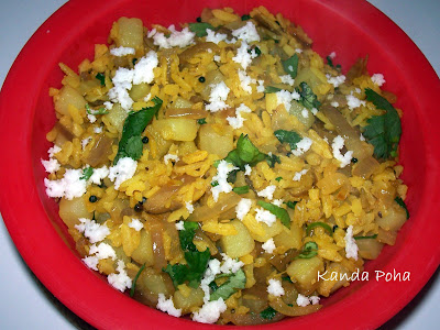 Preeti from Khaugiri sent many recipes in different categories, and here is her recipe for the traditional Maharishtrian favorite - Kanda pohe!